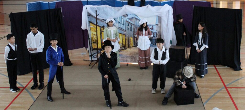 This year, students staged a 30-minute production of A Christmas Carol complete with costumes, props and set design, lighting, and sound.