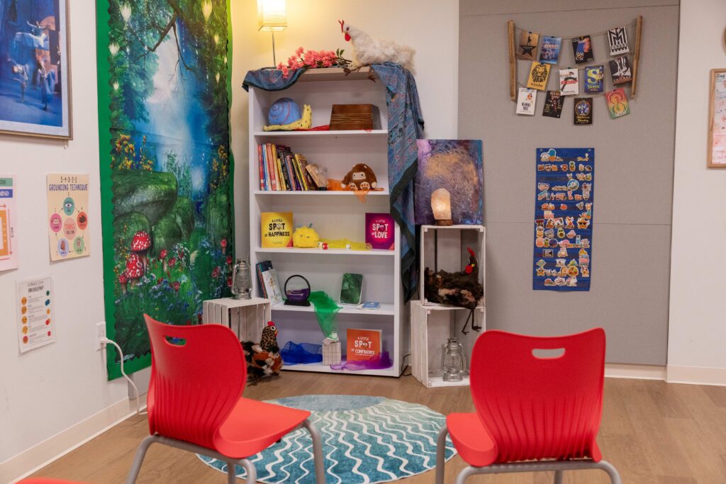 Her drama classroom is intentionally designed to foster trust, kindness, and collaboration. Students participate in group warm-ups to build camaraderie, small-group collaboration, and individual speaking and performance opportunities.