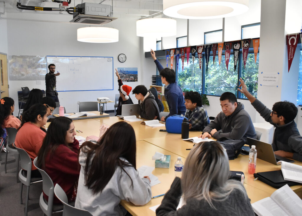 In Mr. Haines’s Historical Leadership class, Grade 8 and 12 students worked together in a historical re-enactment game set on the eve of the first Thanksgiving. They played as either Wampanoag or English, who met in separate rooms with limited communication, and had to decide whether to cooperate, isolate, or fight. The game produced a rather sad outcome—the Wampanoag came bringing gifts of friendship, and the English turned them away—but it also provided insight into the lives of early settlers and just how close that first Thanksgiving was to never happening.
