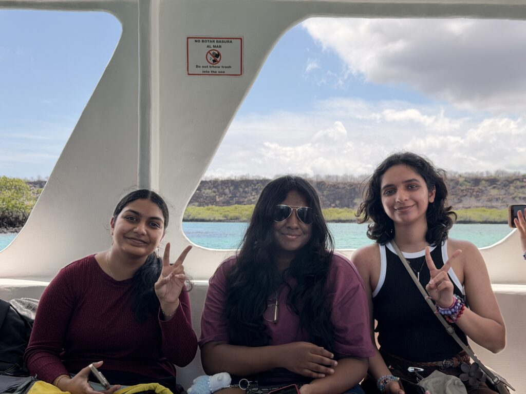 On their first full day in the Galápagos, the group traveled to Rancho Primicias on Santa Cruz Island — a private reserve home to giant tortoises and a hub for regional conservation. Before they had time to settle in, they were handed tools and put to work on a reforestation project, planting native species to help restore the islands’ fragile ecosystem. A visit to the Charles Darwin Research Station later in the week brought the stakes into sharper focus — and for many students, it reframed what it means to travel somewhere as carefully protected as the Galápagos. The islands, it turns out, require a kind of vigilance most visitors never think about. Diya D. described a moment that stopped her mid-flight: