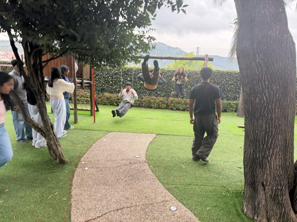 On the last evening in Quito, before the flight home, the group found a playground outside a pizza restaurant and spent an hour playing in the rain. It was the kind of moment that sneaks up on you — and for many students, it was when the weight of the trip finally landed. Nine days of volcanoes and sea turtles and strangers spraying foam in the street, and what broke through was a wet playground and the realization that these were the same people they’d been sitting next to in class for years, just seen differently.