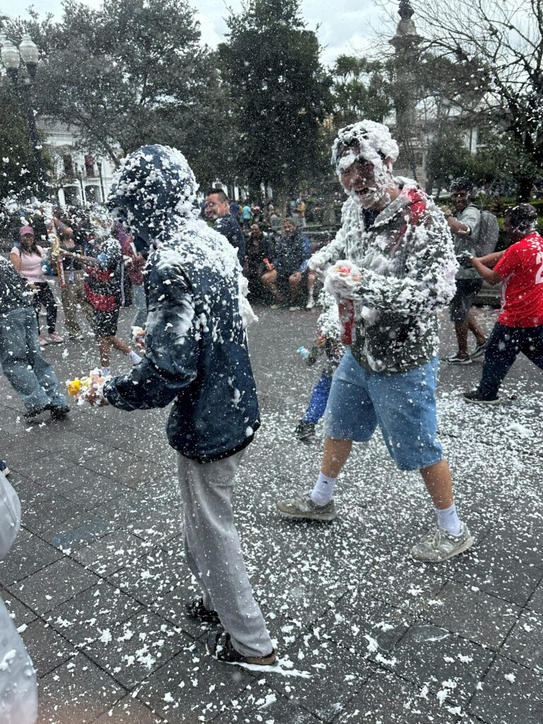 But the surprises weren’t limited to the islands. In Quito, while walking through the city center, the group stumbled into a local carnival celebration — complete with strangers spraying foam and paint at anyone who walked by, including a group of BIF seniors who had absolutely no idea what was coming. “We all walked back onto the bus covered in foam and paint,” laughed Diya D. “It was fun and a little scary because we didn’t know what to expect, but looking back, those were aspects of the culture that we got to see and experience.” It ended up being one of the most talked-about moments of the whole trip — which says something about what travel can do when it catches you off guard.