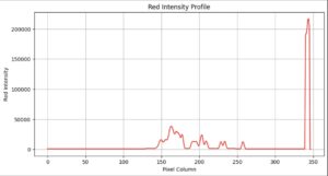 To better visualize the red intensity variations across the images, I created red intensity profiles by summing the red channel values for each column in the processed images. Plotting these values helped identify potential inconsistencies in snow reference marker detection and provided insights into snow accumulation trends at different burn severity levels.