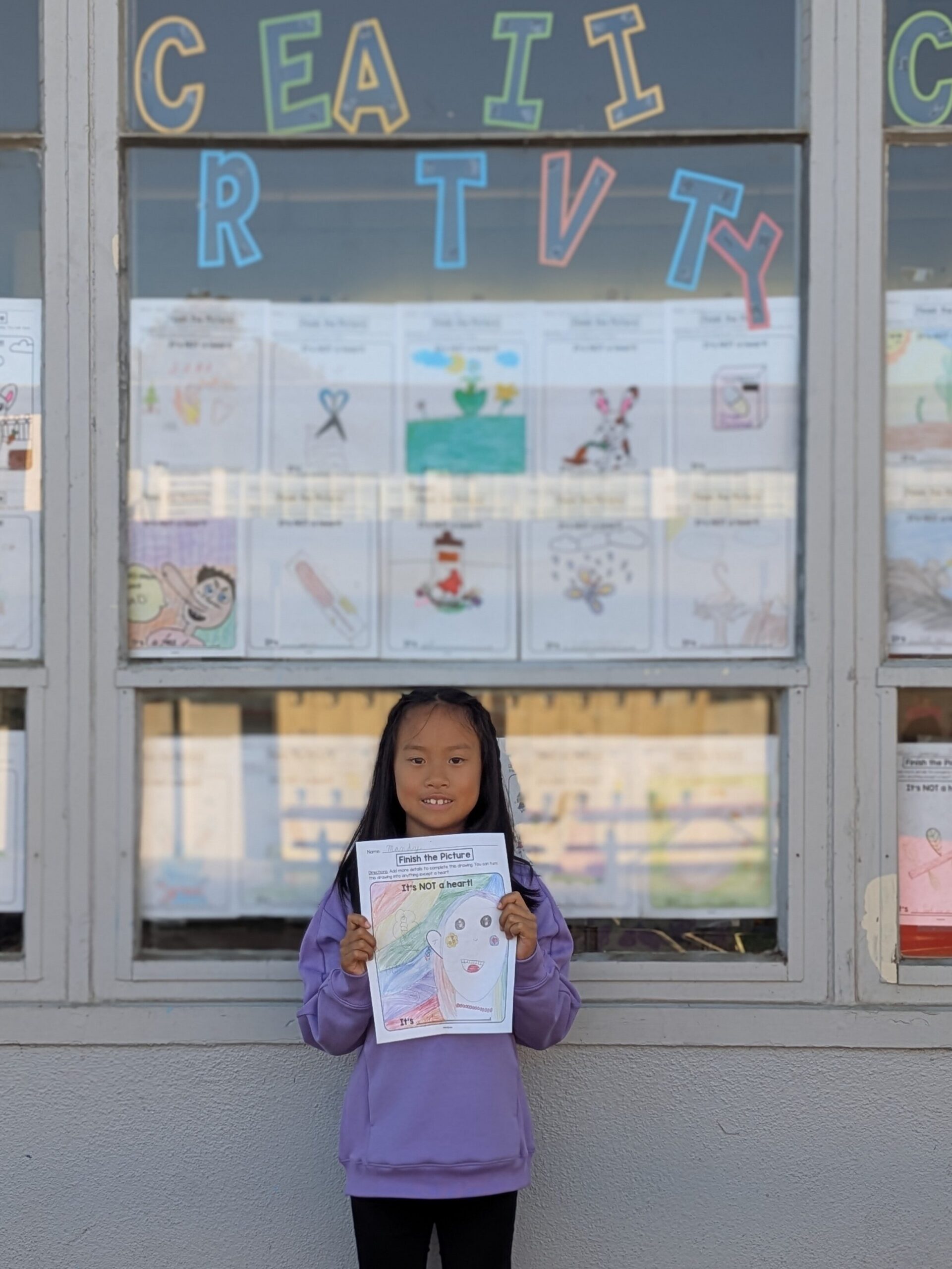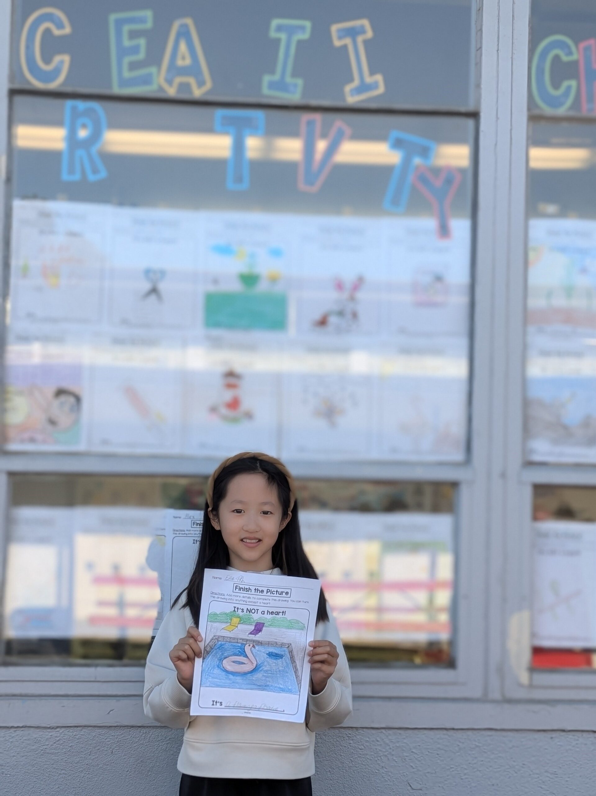 The Monthly Creativity Challenge Contest allows students and staff to showcase their creative problem-solving. Winning ideas are displayed to inspire future entries. One example of a creativity challenge was the “It’s Not a Heart!” activity, where participants were given what looked like the outline of half a heart and invited to transform it into something entirely different. Students and staff used their imagination to build creative drawings around the shape—anything but a heart. The results were impressive, with many truly inventive and thoughtful entries! Ms. Bhatnagar shares, “Last week, a couple of my Grade 4 students came to me during lunch break asking for more challenge sheets since they had a brand-new idea they hadn’t thought about before.”