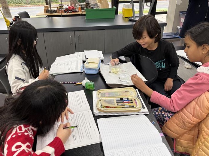 In Dr. Luo’s grade 4 science class, students recently tackled a deceptively simple question: why do oil and vinegar sometimes mix instead of separating into layers? “We started at the observable scale by having students mix oil and vinegar and notice that they don’t mix and instead form layers,” Dr. Luo explains. From that initial observation, students generated their own questions about what was happening at a molecular level—questions that would drive their entire investigation.