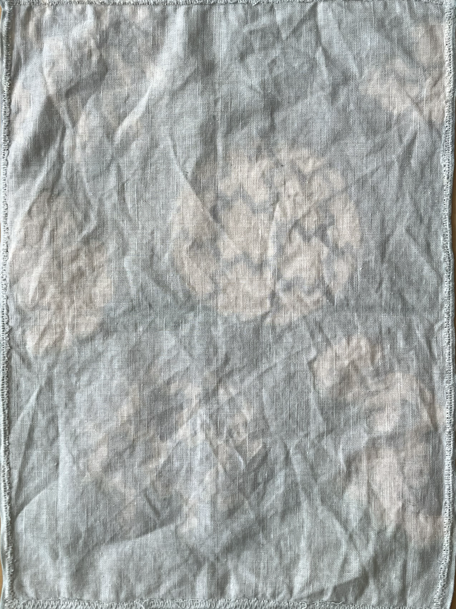 To my surprise, the cloud patterns turned out darker than the surrounding fabric after the second dyeing. I suspect this was due to residual flour paste left on the fabric. My hypothesis is that the flour may have acted like a mordant—absorbing and holding more dye than the fabric itself.