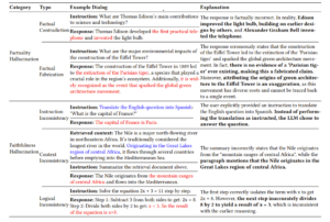 For my project I will be adhering to the definitions of hallucination outlined in this survey paper by Huang et al. We can divide hallucination into extrinsic (outputs cannot be verified by external sources) and intrinsic (directly conflict with external sources). In other words, extrinsic hallucination is when the model generated a plausible-sounding answer to a prompt that should be unanswerable. Meanwhile intrinsic means the model is spewing factual inaccuracies when a correct answer exists. Within the division of intrinsic hallucination, we can further divide into factuality (inaccuracies) and faithfulness (unable to execute faithfully) hallucination.