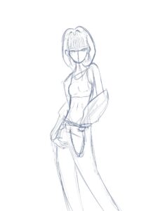These are mostly sketches, and I have chosen to include some of my guiding lines mostly because it’s part of how I define the anatomy and will be useful for myself to go back and study, but it also makes it possible to see my thought process when creating the second character as well as the subtle changes I made between versions.