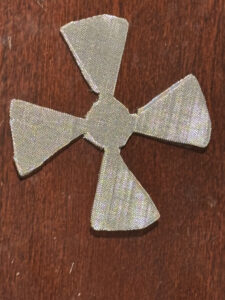 2. I printed out two cutting stencils without bed glue. After aligning them and clamping them down against the mesh, I got out my exacto knife and cut along all the stencil lines. I then put away the stencils and cut out the final pieces of connecting mesh. Lastly, I bent the fins upwards slightly to ensure that holding the fins down also held the central bit against the diaphragm plate. These stencils were really useful in allowing me to consistently cut diaphragm heating elements in the same shape, which is instrumental when trying to predict what pressure the diaphragm will fail at given a certain heating time.