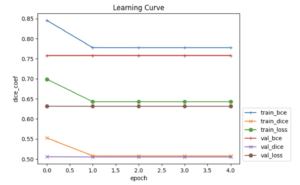 However, my learning rate still plateaus after the first epoch, and the loss values are still decently high. My question for you, readers, is how can I improve the model to address this? I’ve been inspecting the model visually a lot of times up to now, but the numbers look pretty concerning, with Binary Cross-Entropy (BCE) at around 0.8.