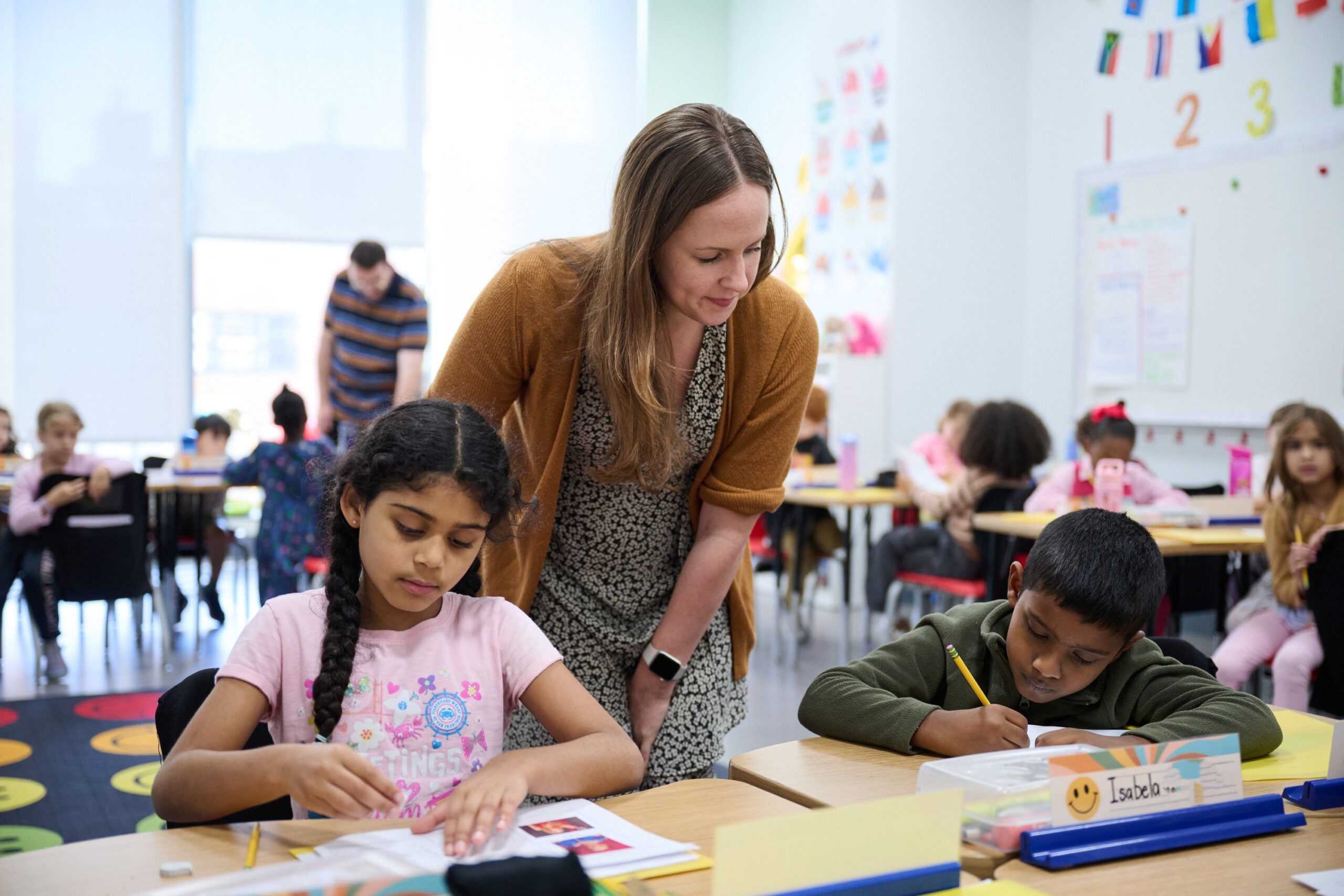 “This is a really unique model of co-teaching,” shared Head of School Rose Miller-Sims. “In other schools, co-teachers are focused on one very specific aspect of learning, such as supporting English Language Learners or students with diagnosed learning differences. In our model, we have two experts in teaching in a classroom, each with a different lens for how to support student learning. That is a big part of how we ensure that foundational skills are fully solidified in the primary years. The model leads to tailored instruction that really helps students fill gaps.”